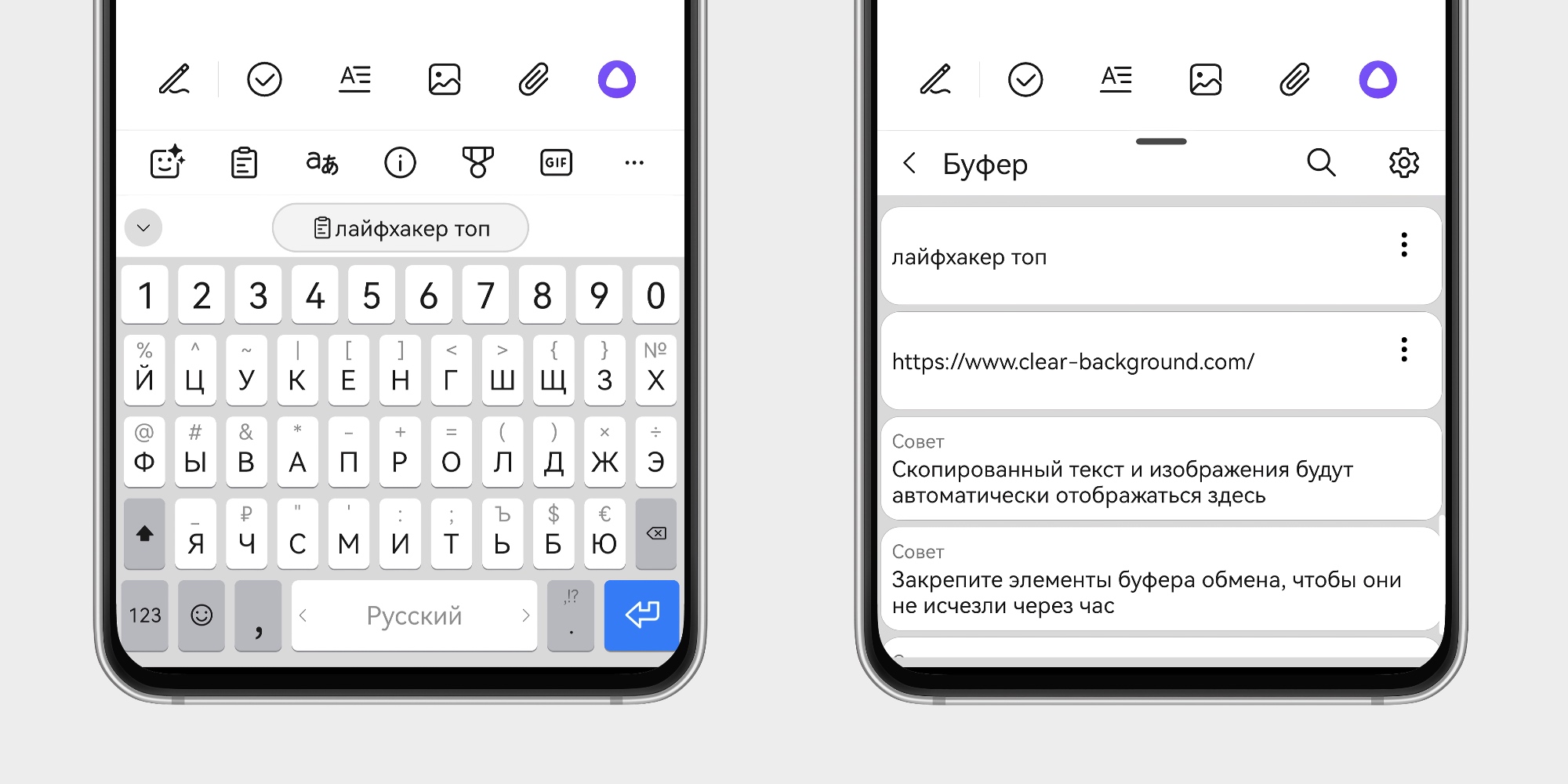 Android предлагает удобный доступ к буферу обмена прямо с клавиатуры. В большинстве случаев вы видите превью скопированного текста и можете быть уверены, что вставляете именно то, что нужно. Ещё можно залезть в него поглубже, если вдруг вам понадобится текст или картинка, которую вы копировали раньше. А то, что вам приходится копировать и пересылать часто, можно вообще закрепить в буфере обмена, чтобы быстро вставлять в любой момент.