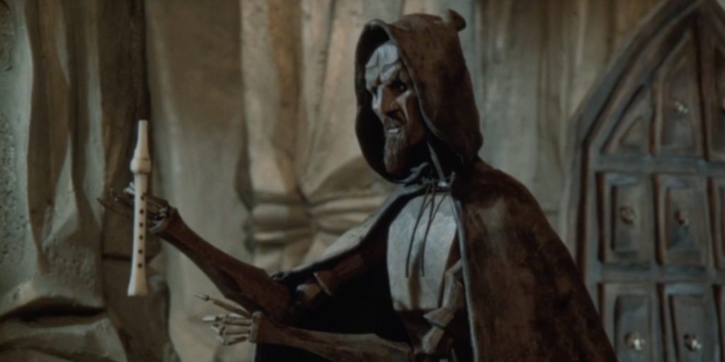 Кадр из мультфильма «Крысолов»В средневековый город Гамельн, наводнённый крысами, приходит Крысолов. Он предлагает городскому управлению — кучке жалких и алчных дельцов — избавить их от проблемы с грызунами за 1 000 монет. Чиновники соглашаются, но когда Крысолов приходит за оплатой, дают ему только пуговицу и смеются. Тогда герой самостоятельно решает судьбу погрязшего в грехах города и его жителей. Чешский мультипликатор Иржи Барта критикует общество потребления, используя для этого гротескно-мрачный мир мультфильма. В его Гамельне люди при помощи технологий подчиняют природу своим алчным нуждам — именно из-за этого город и кишит крысами. Барта создал кукол так, чтобы они выглядели как можно более механистично на контрасте с живыми крысами. Грызуны стали символом естественной природной силы. Они приносят гибель человеку, ставшему рабом своих желаний.